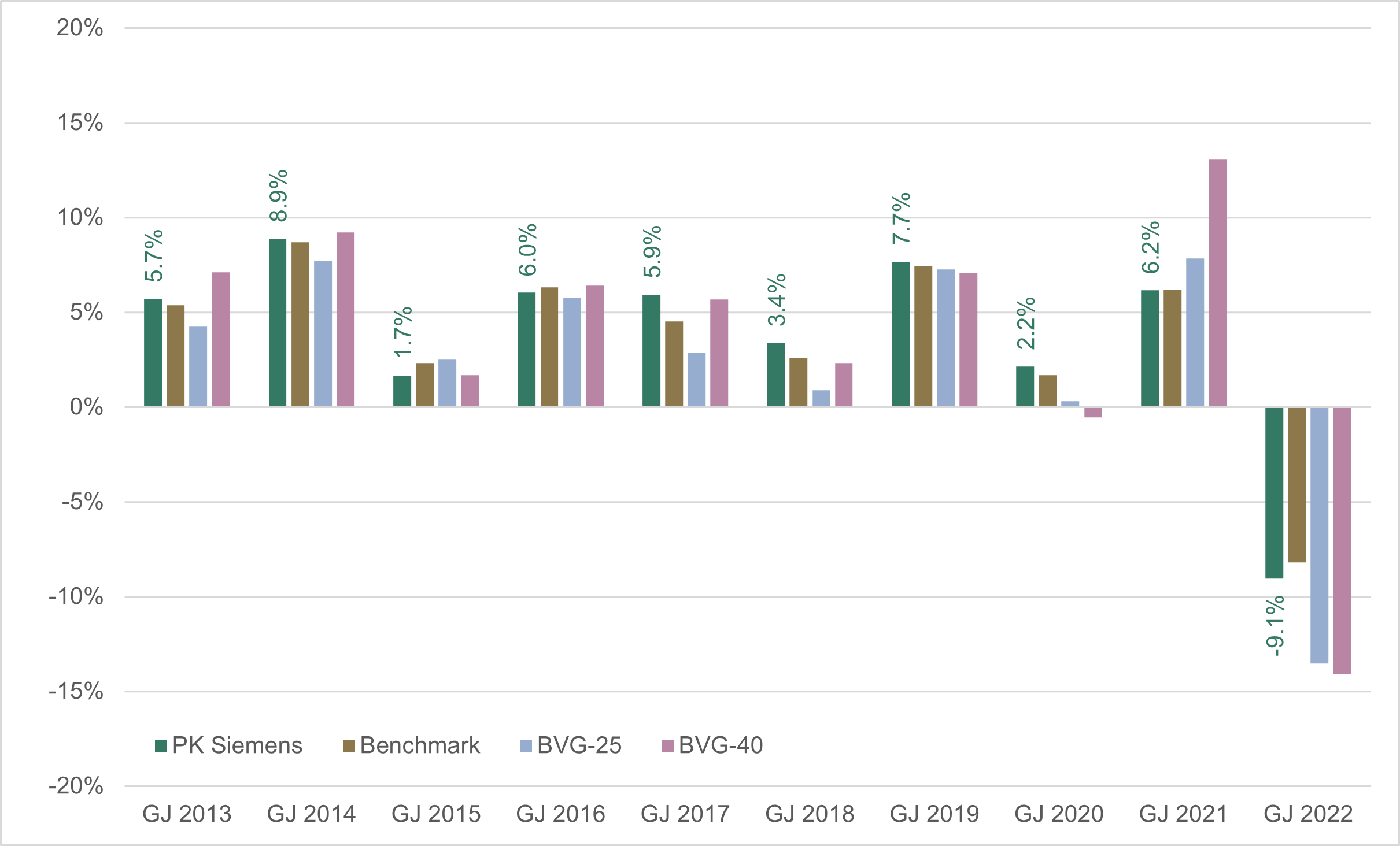 | 2022 | -9.05% | -8.21% | -13.55% | -14.09% |