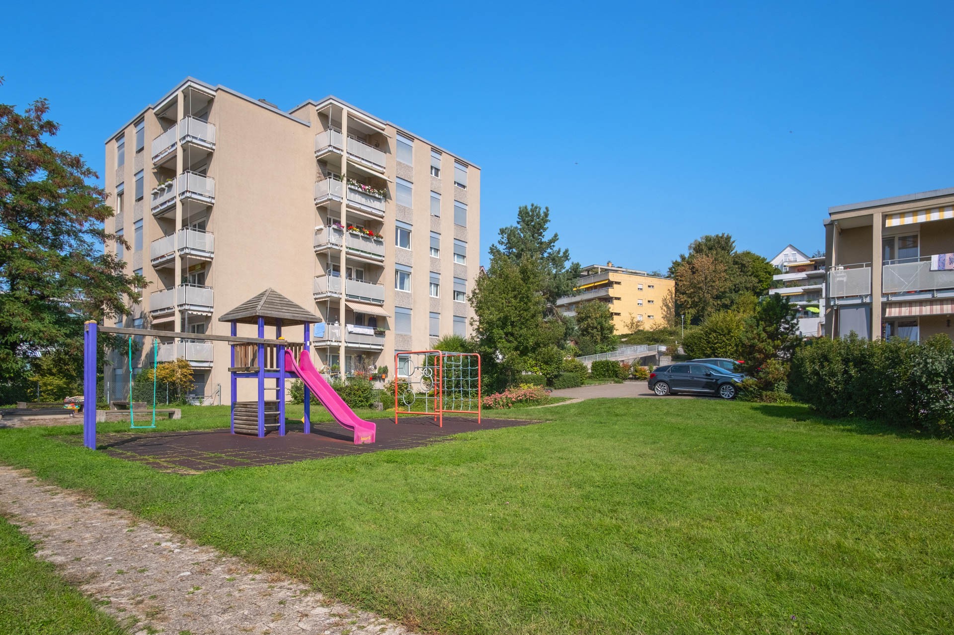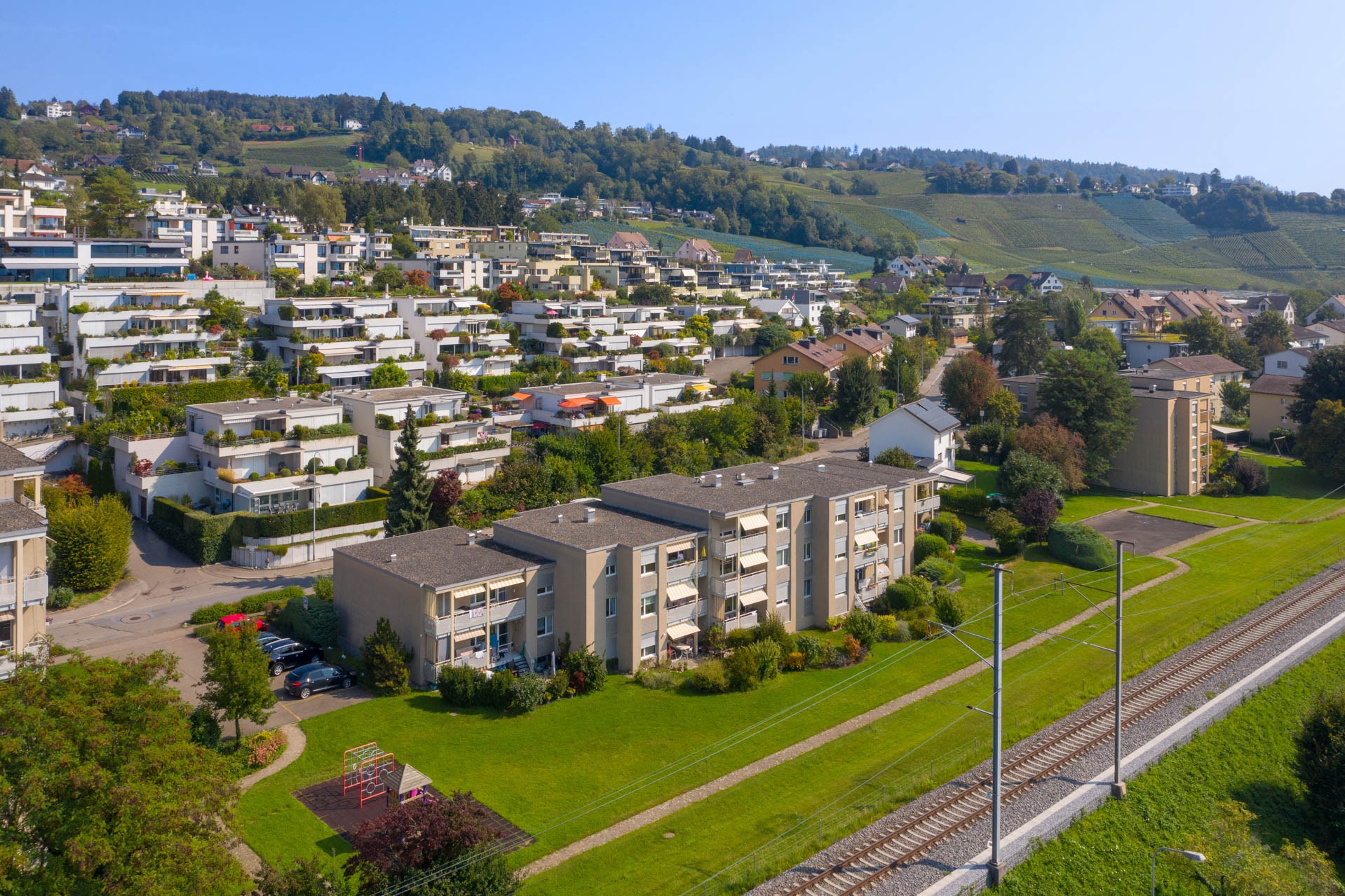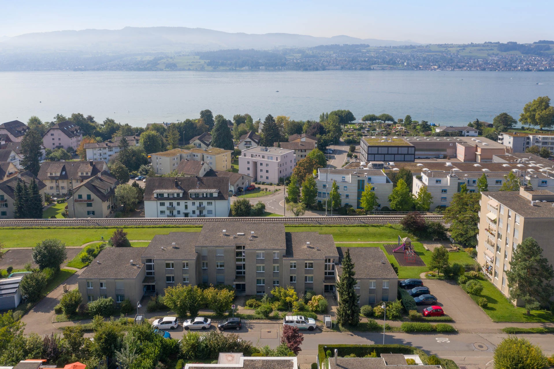 Die Mehrfamilienhäuser befinden sich oberhalb des Zürichsees, umgeben von grosszügigen Grünflächen mit Sitz- und Spielplätzen. Fernsicht auf den Zürichsee und zu den Alpen.