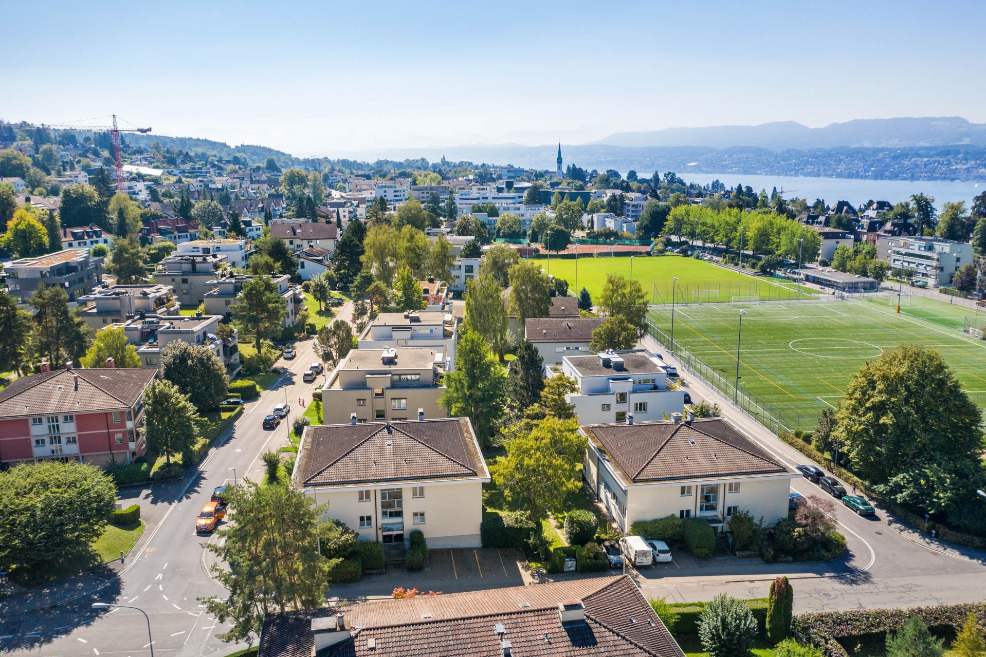 Die zwei Mehrfamilienhäuser befinden sich an leichter Hanglage über dem Zürichsee mit gut besonnten Wohnungen. Einkaufsmöglichkeiten sind zu Fuss erreichbar.